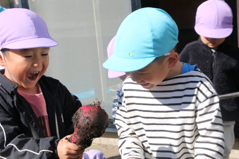 大きなかぶのようにみんなで力を合わせて引っ張ります。