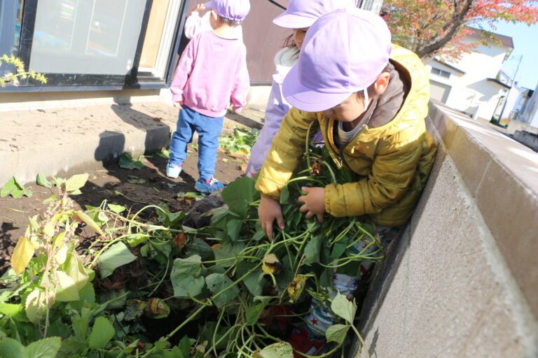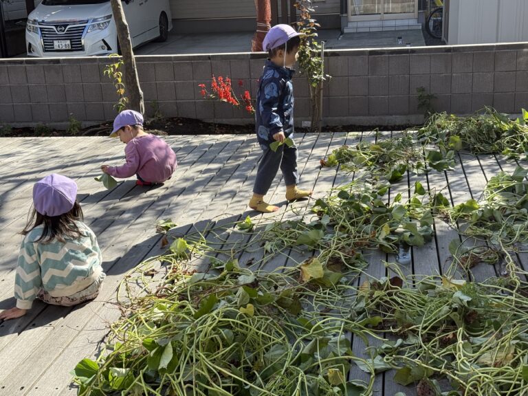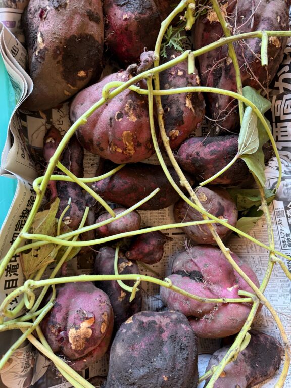 畑一面に覆いかぶさっていたさつまいもの蔓と葉っぱ