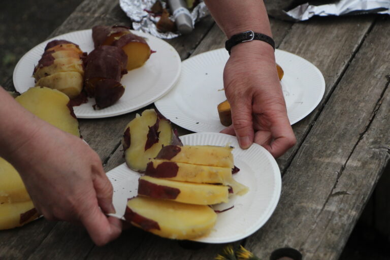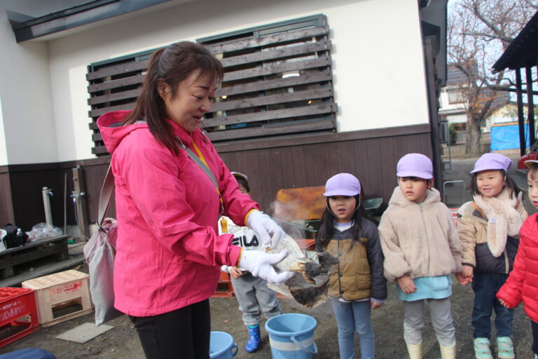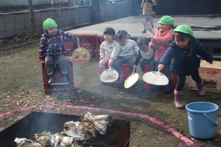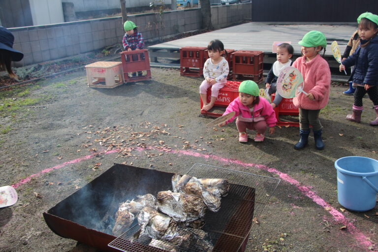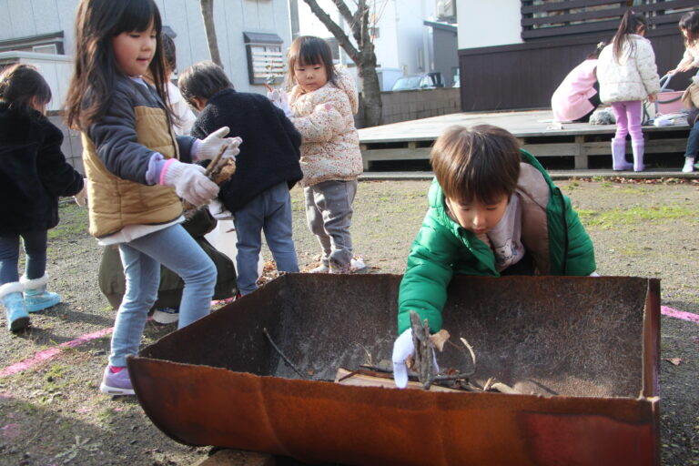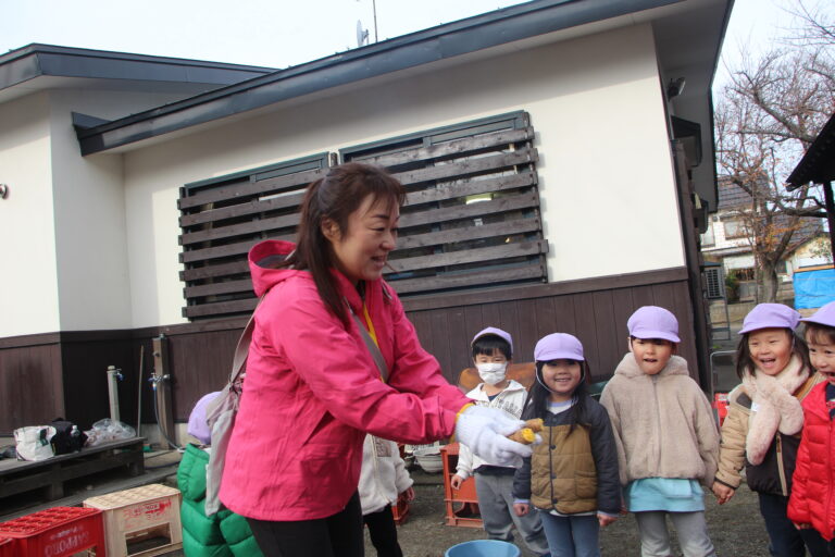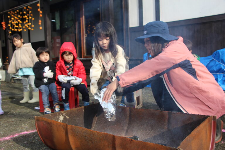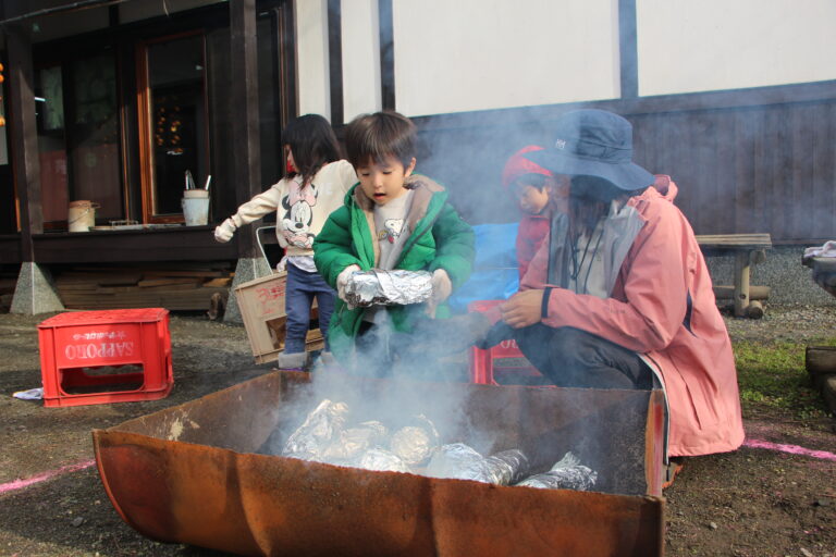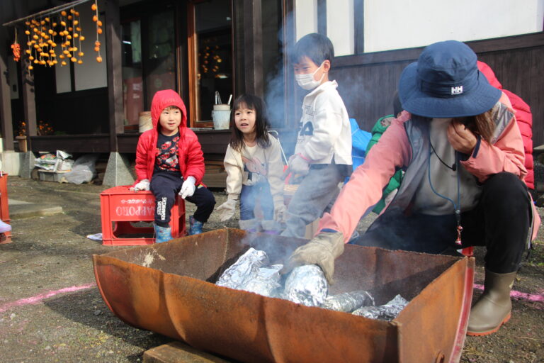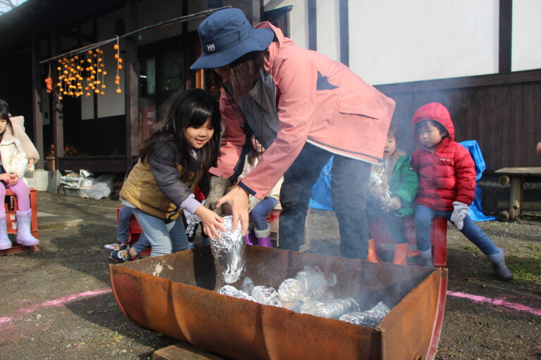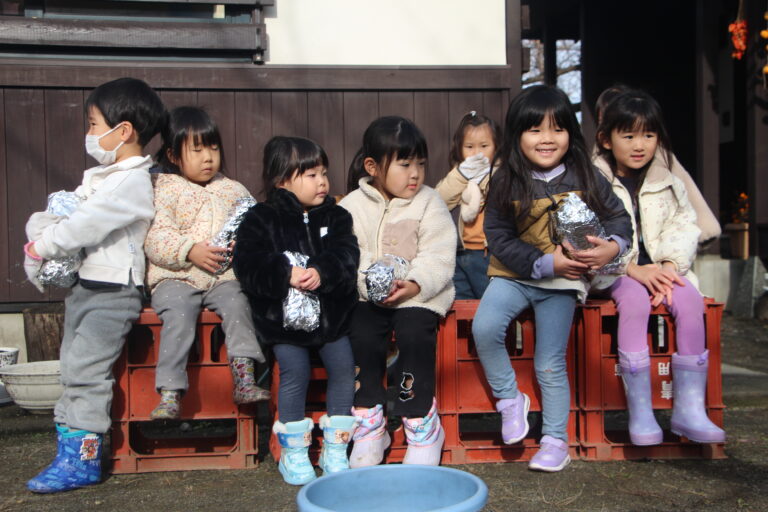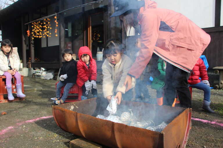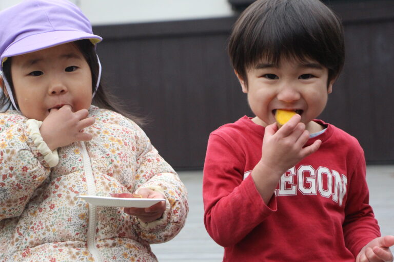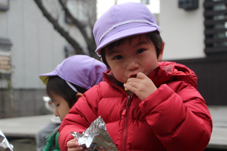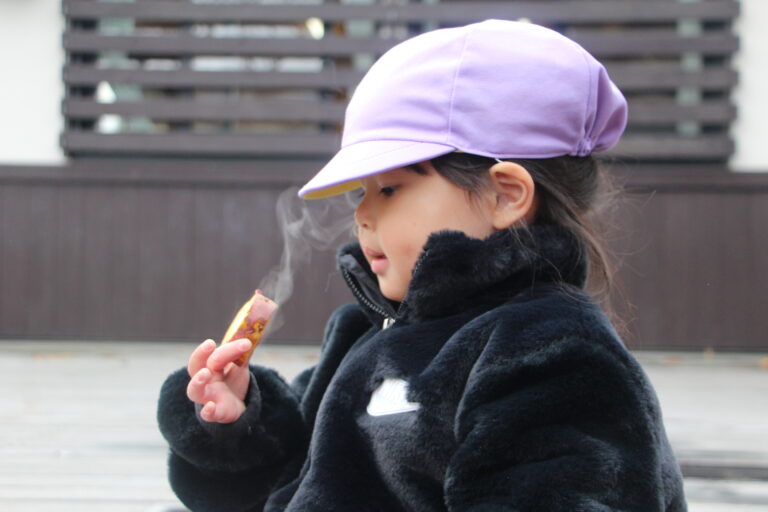 焼き芋のにおいに誘われて、子どもたちの体も食べる準備OK