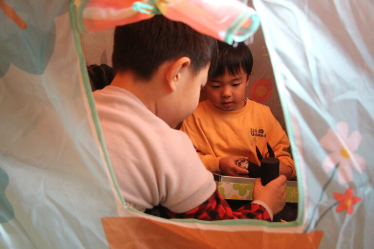 トイレを自分で作り、就寝(ごっこ)。起床するなり