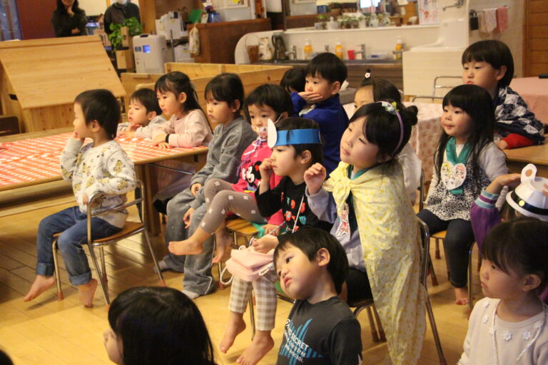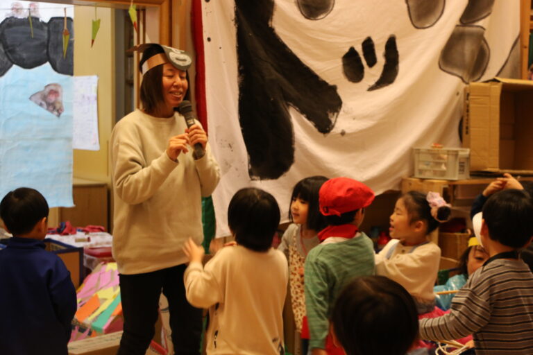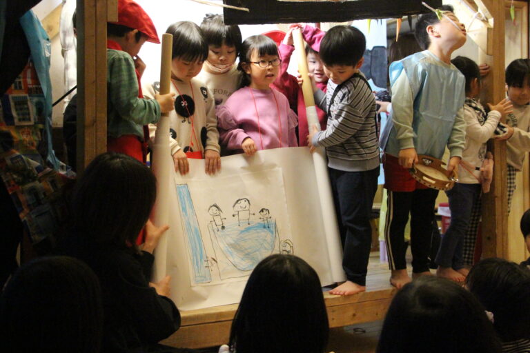 オオカミショッカーとヒーローごっこもリゾートのスタッフによる手作り(4,5歳児の子どもたちによる手作り)紙芝居も