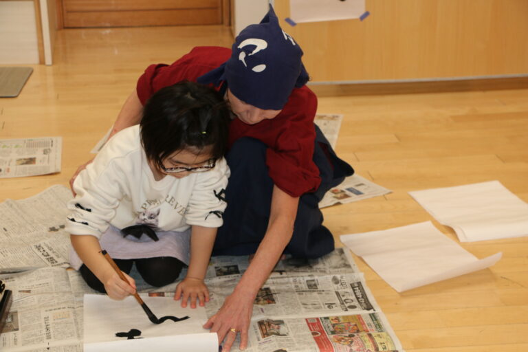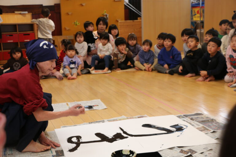 今年の干支は「午」ということで、もう一人の特別ゲストである書道家「香苑さん」による書初めが行われました。