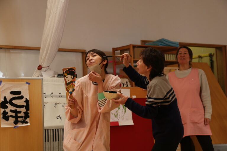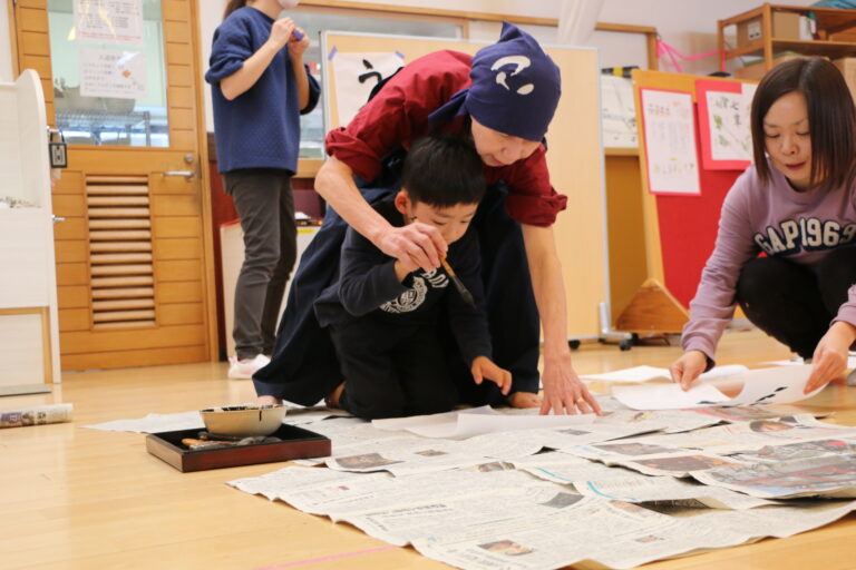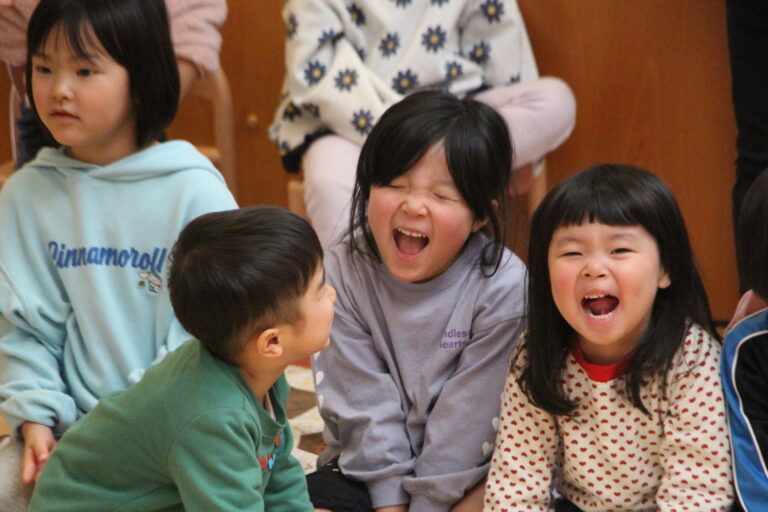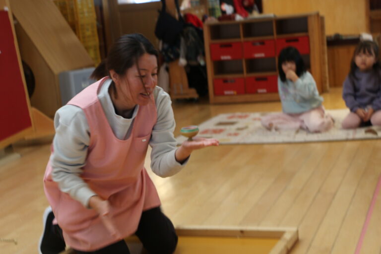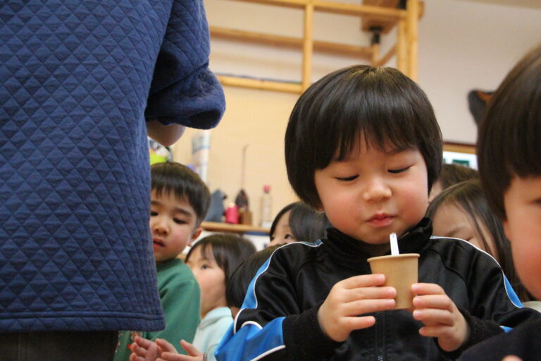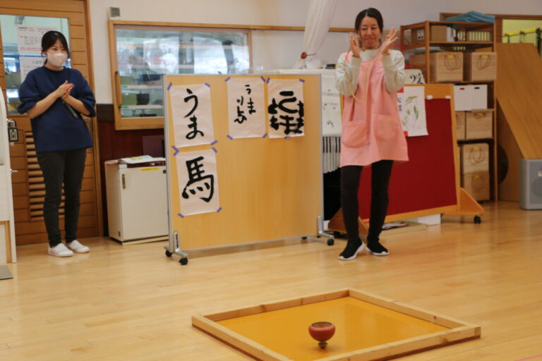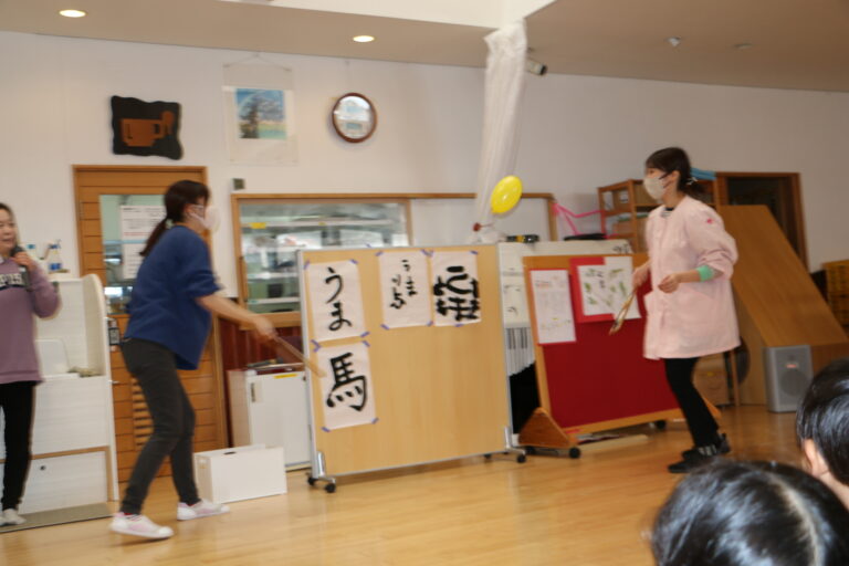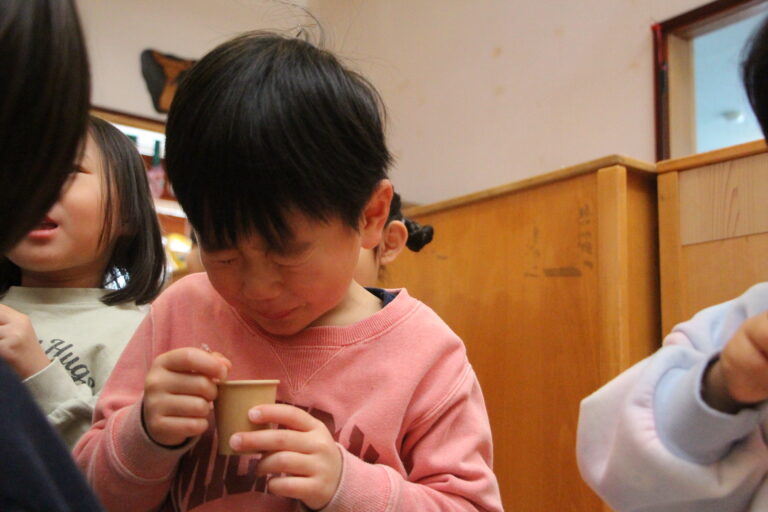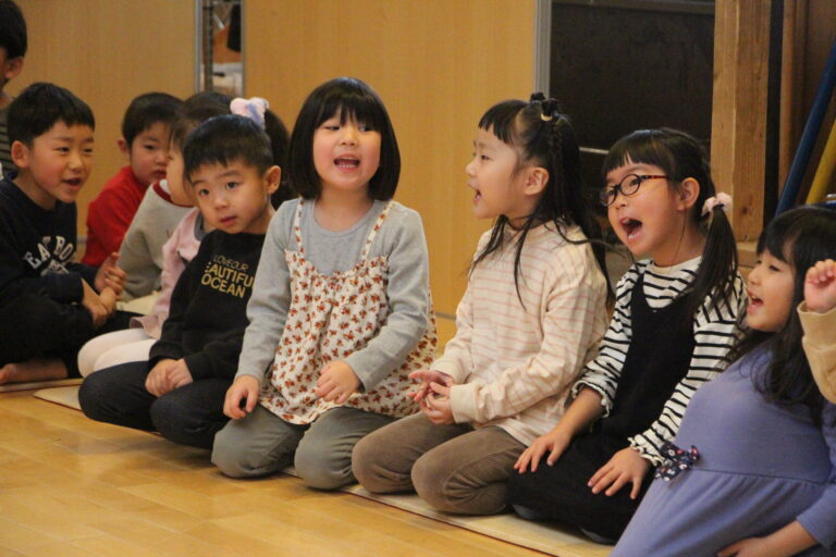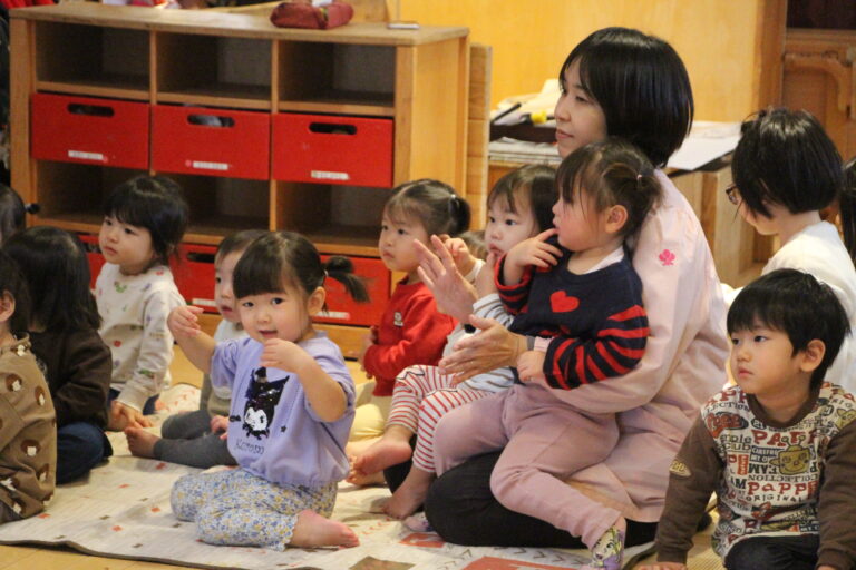 子どもたちと冬のお歌をうたい、七草がゆ&お正月集会が始まりました。