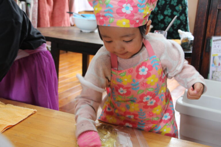 つぶすとき、袋からおいもが出て来ないように口の方を握っていた子がいました。