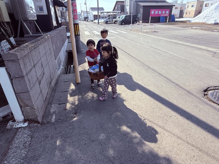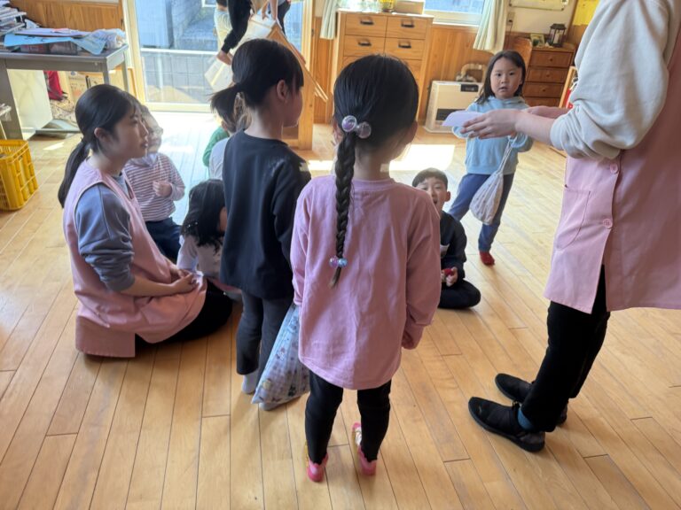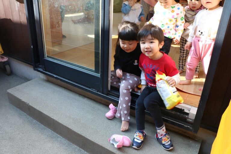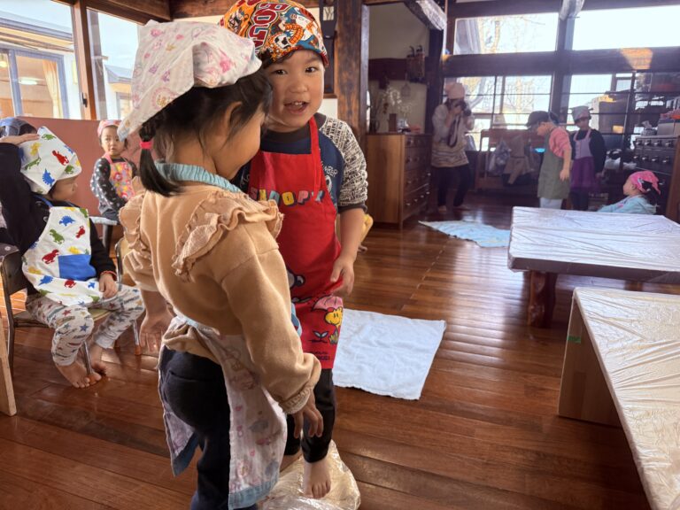 「食べ物なのに、踏んでもいいの?」と、子どもたちは不安げな顔をのぞかせています。