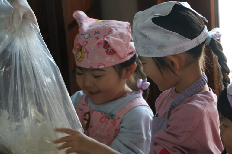 「一緒に遊んでくれた、卒園児さんへありがとうの気持ちを込めて」のクッキングです。