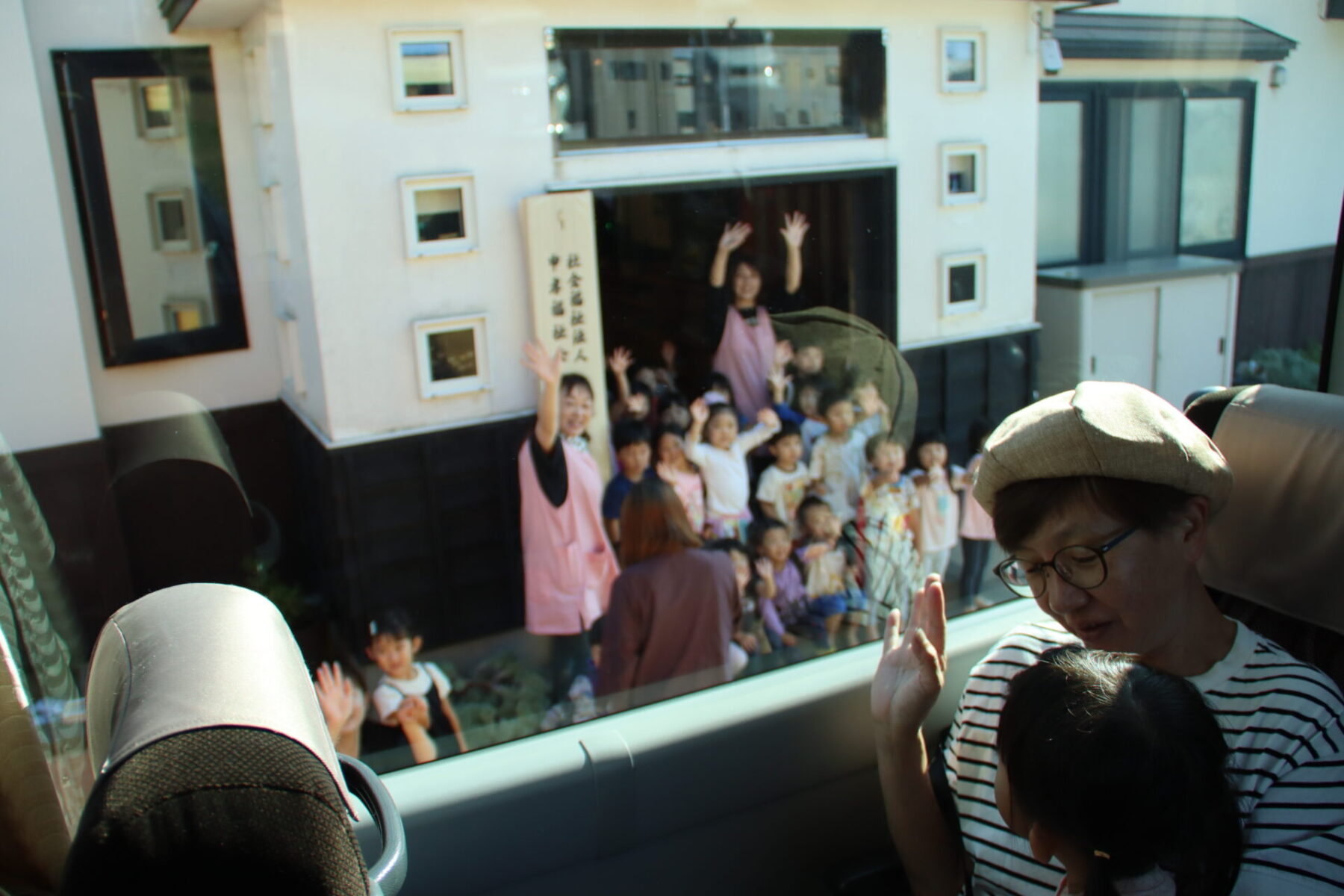 あいの保育園のお友だちと保育士が見送ってくれて出発すると、