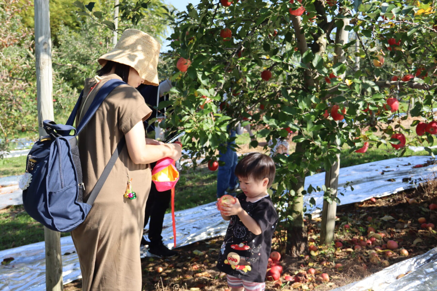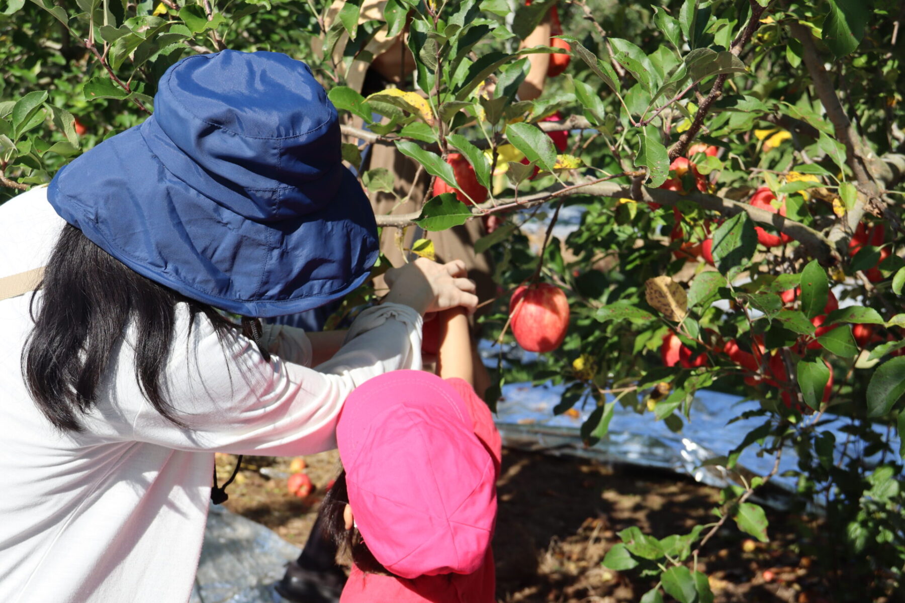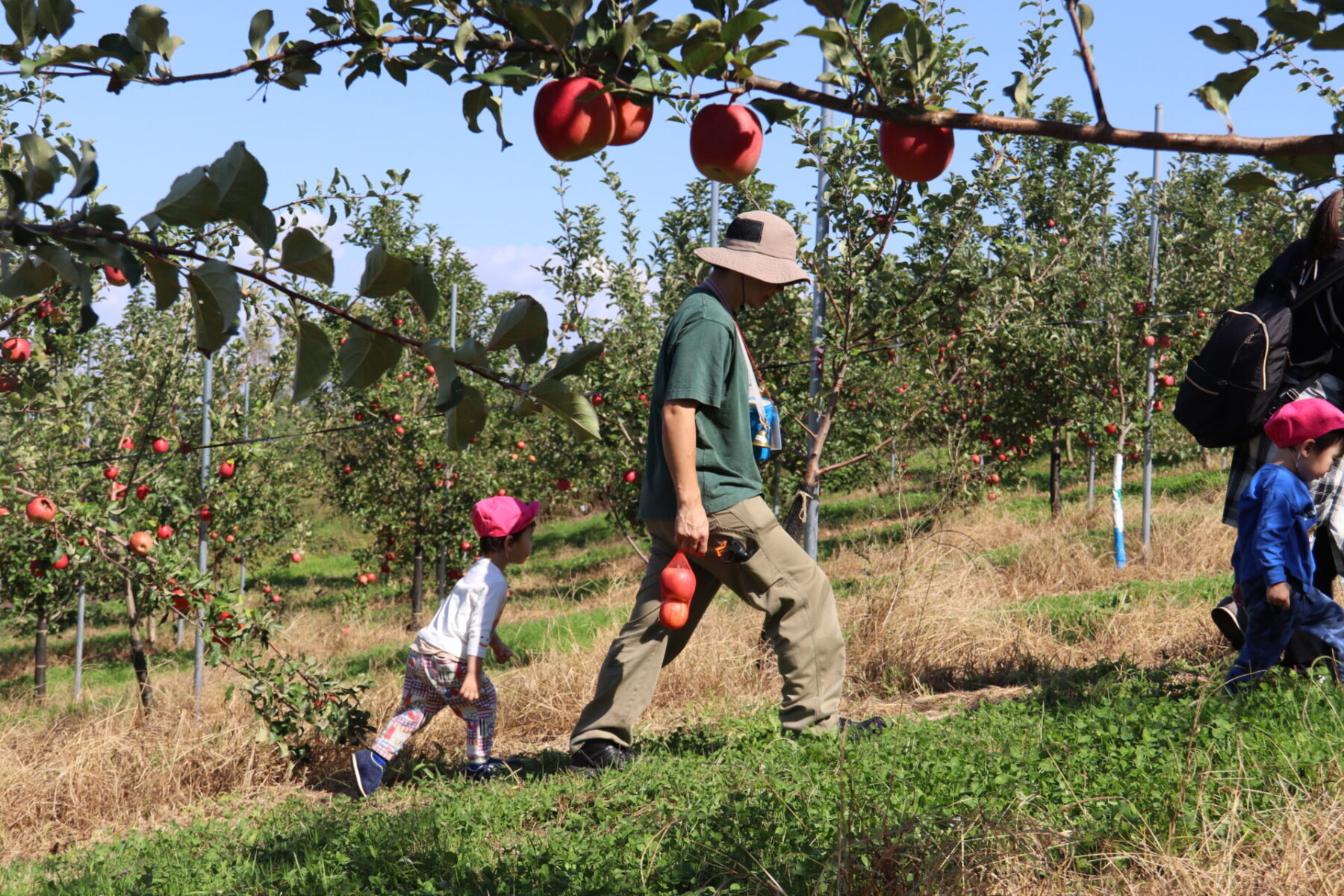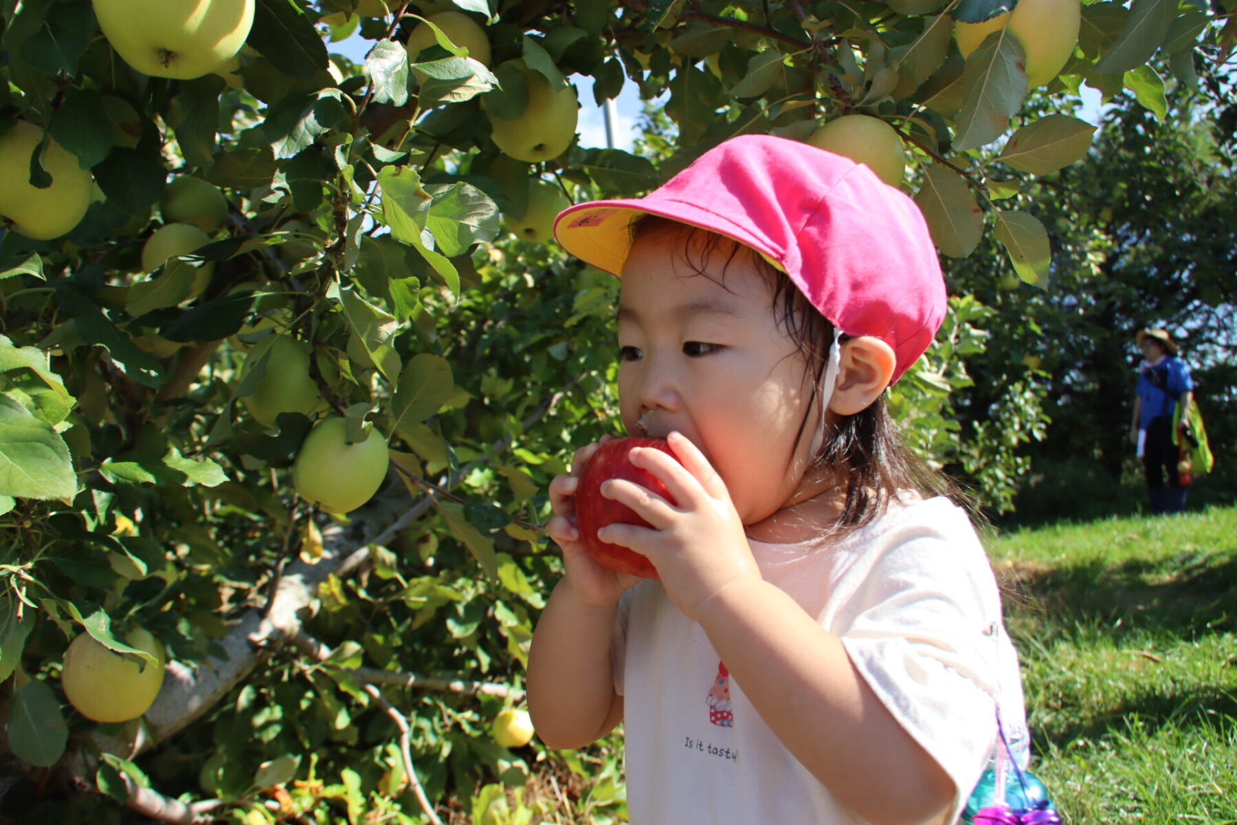真っ赤なりんごのほうがおいしいよと農家のおじさんに教えてもらい、