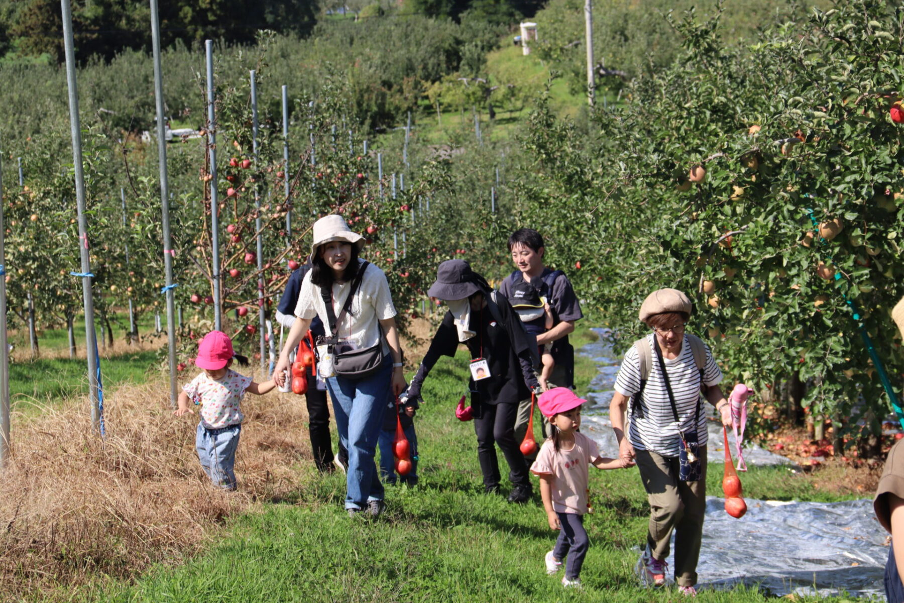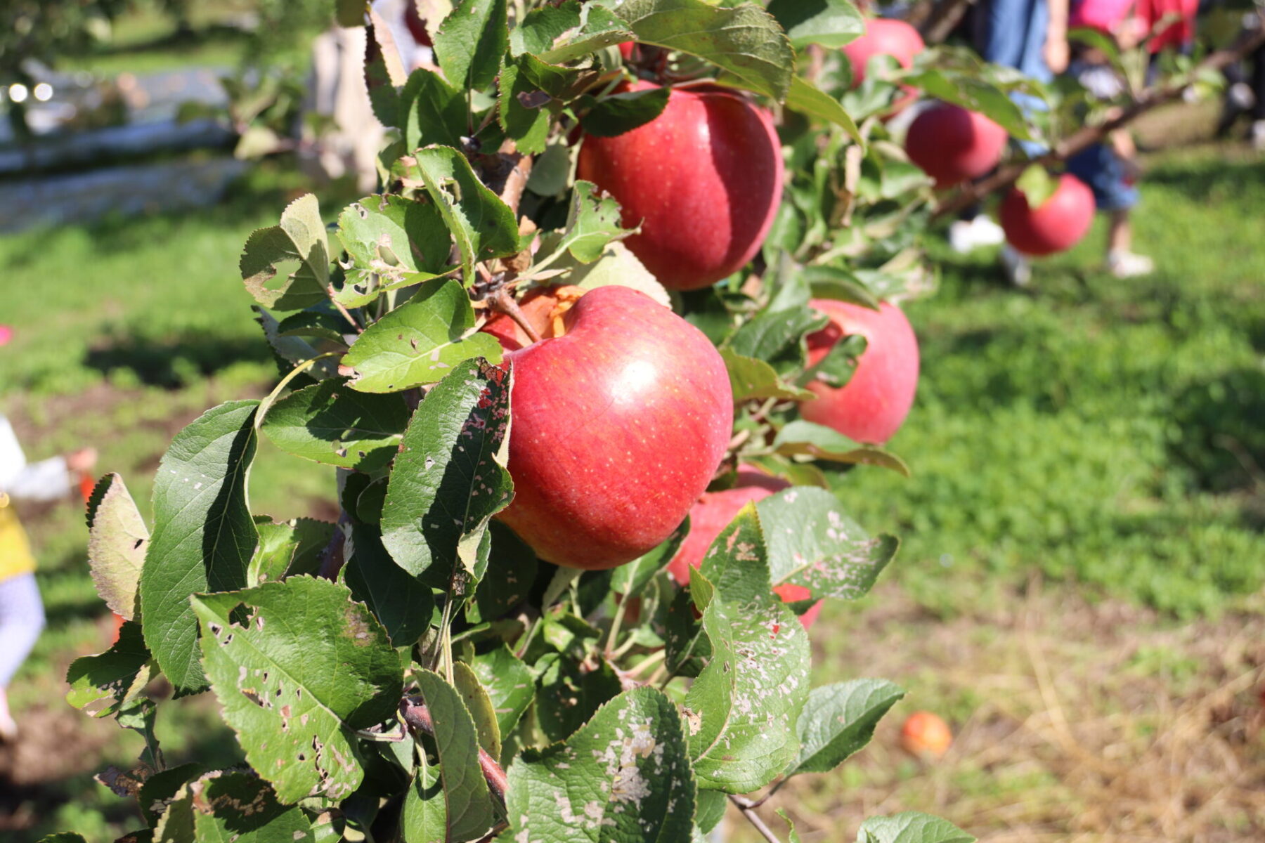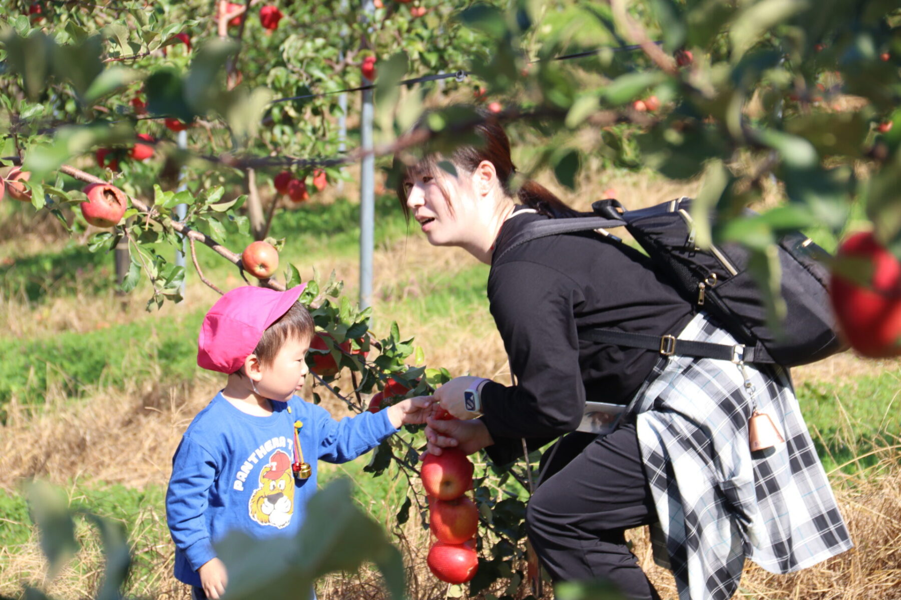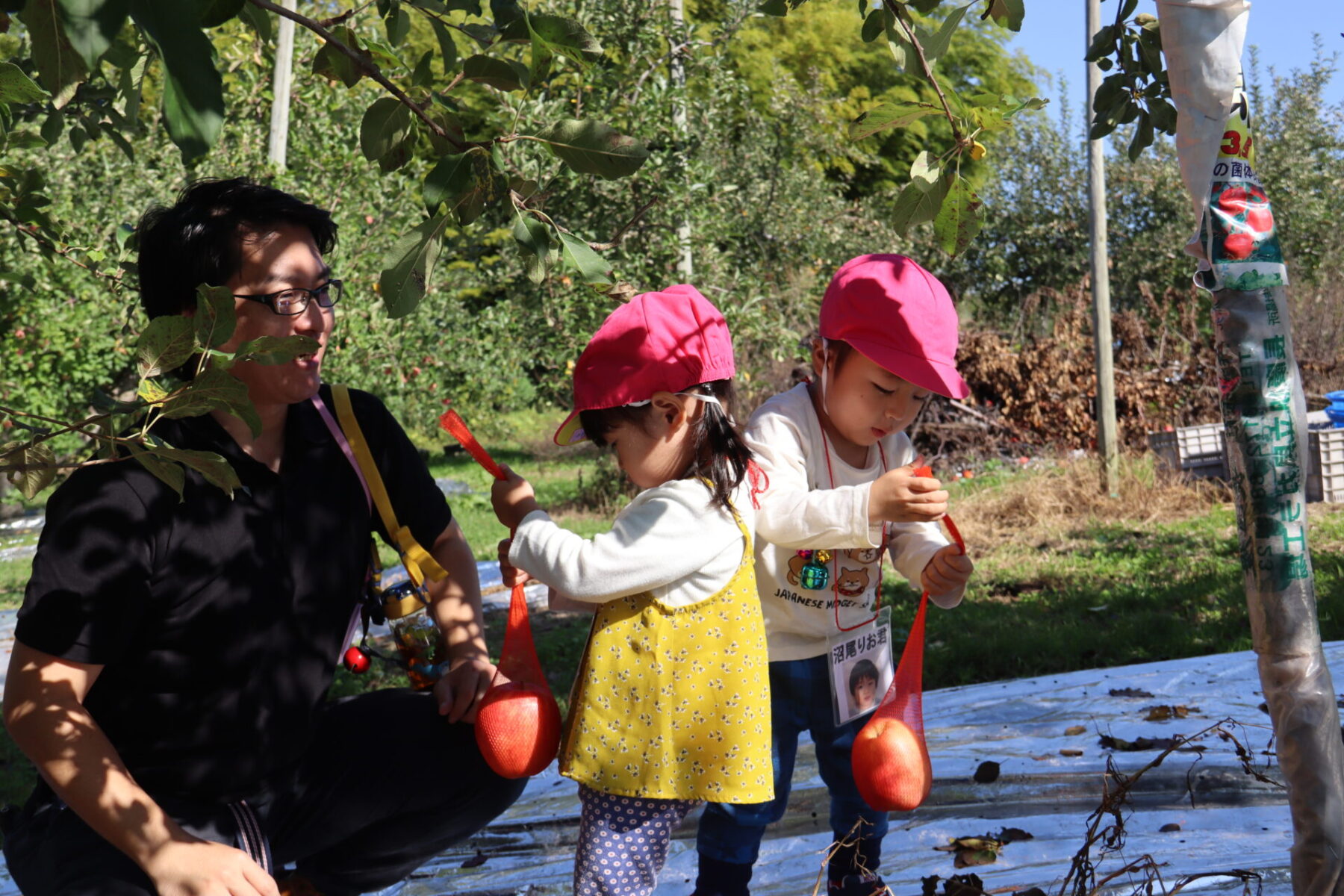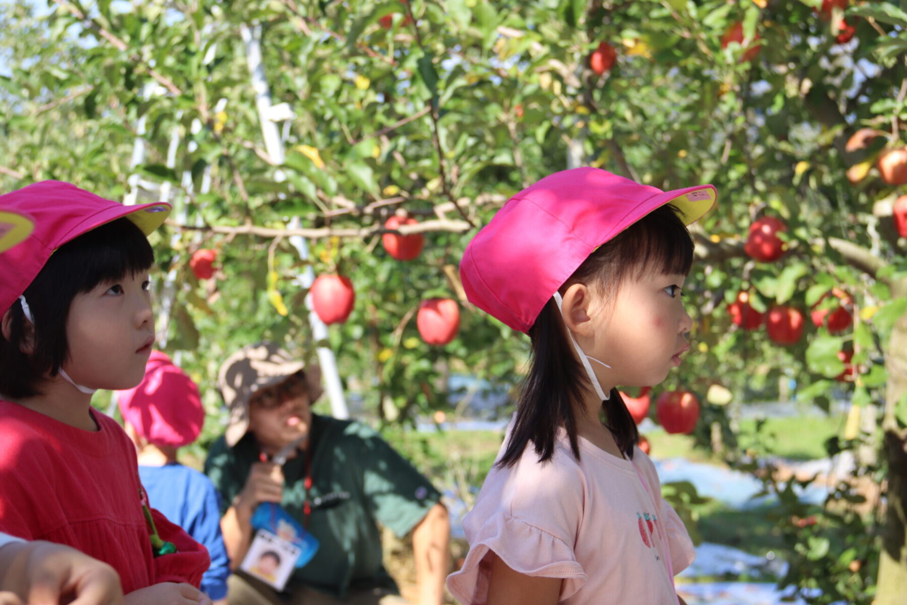 真っ赤なりんごのほうがおいしいよと農家のおじさんに教えてもらい、