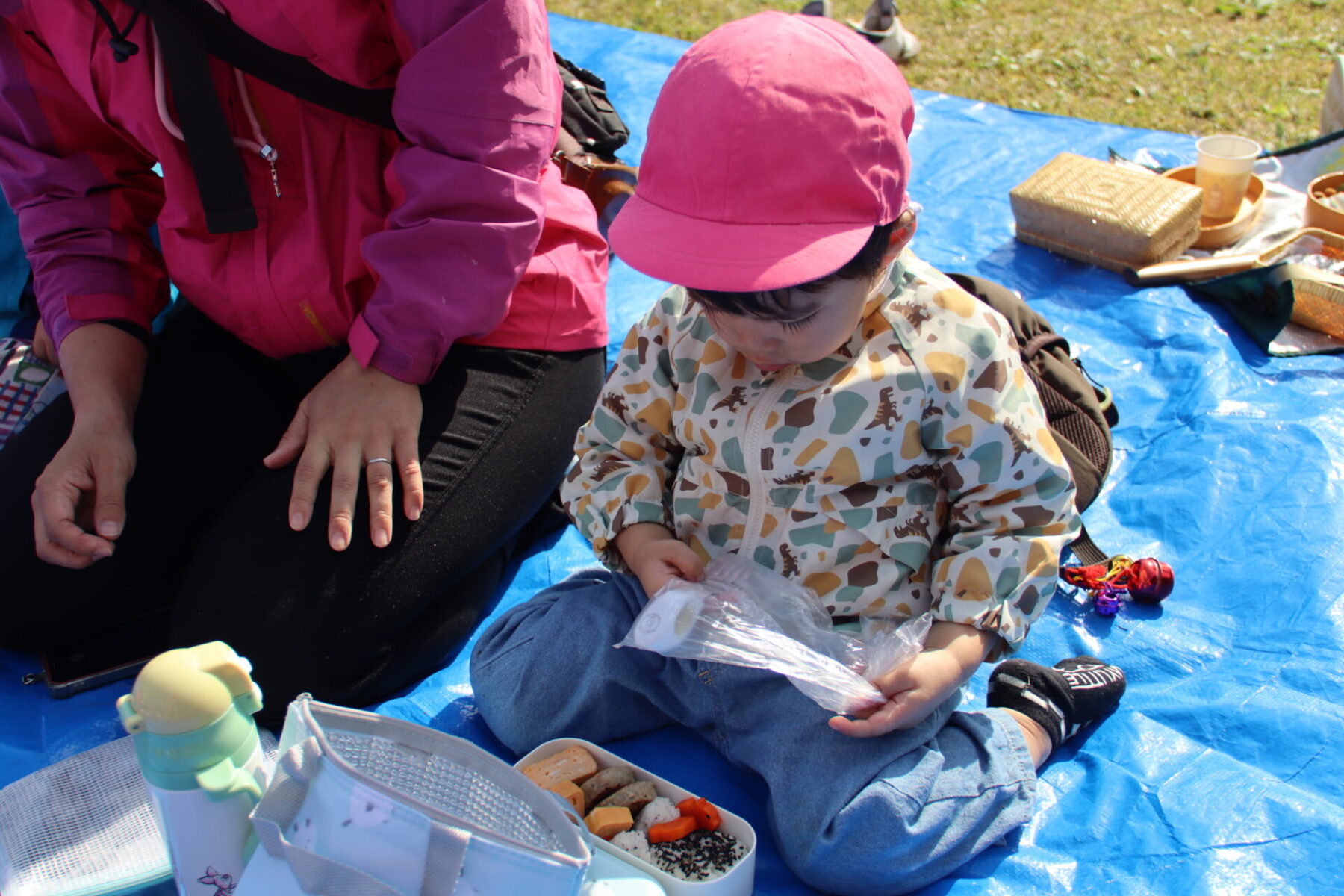 自分のリュックにお弁当を入れて最後まで持ち歩く姿