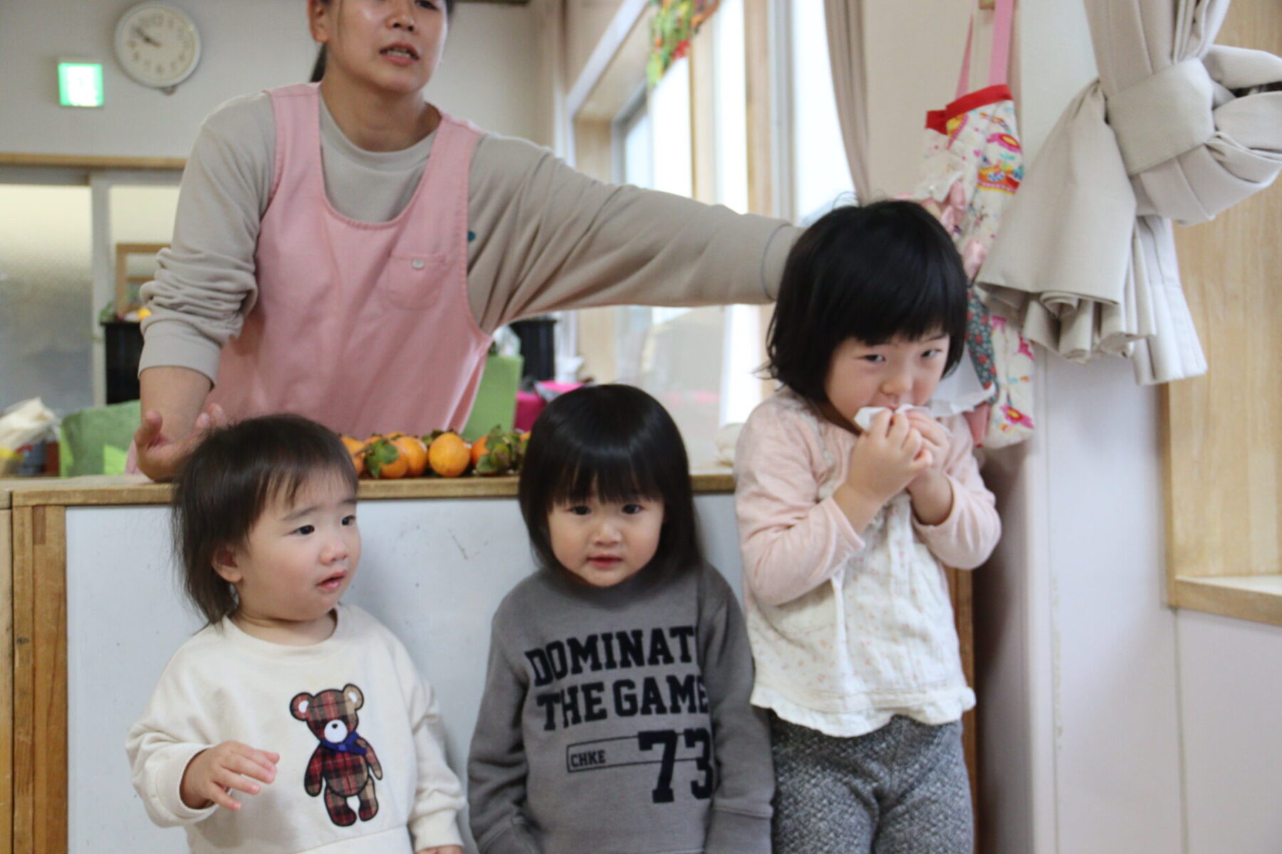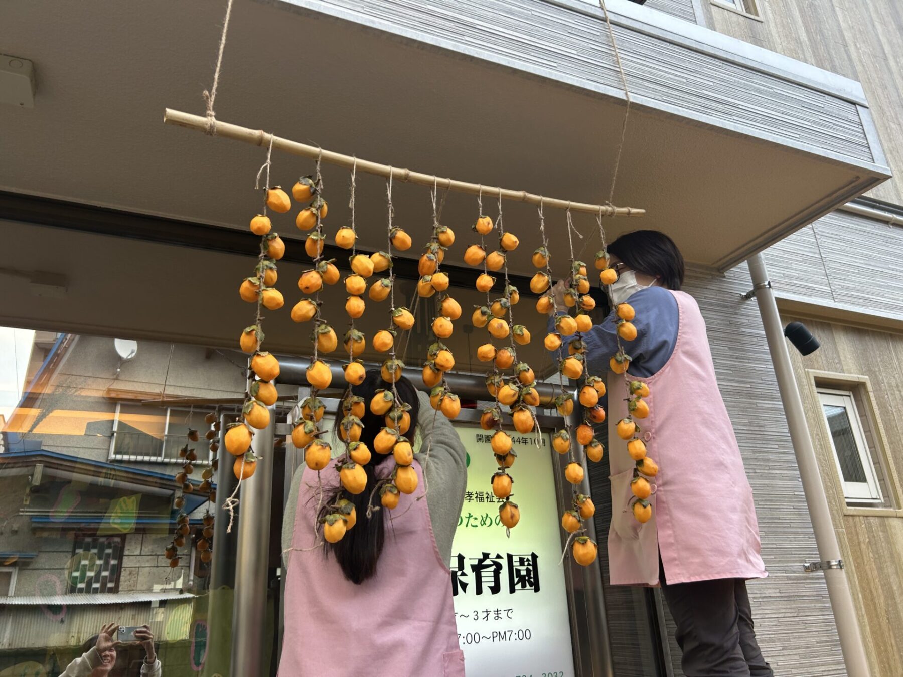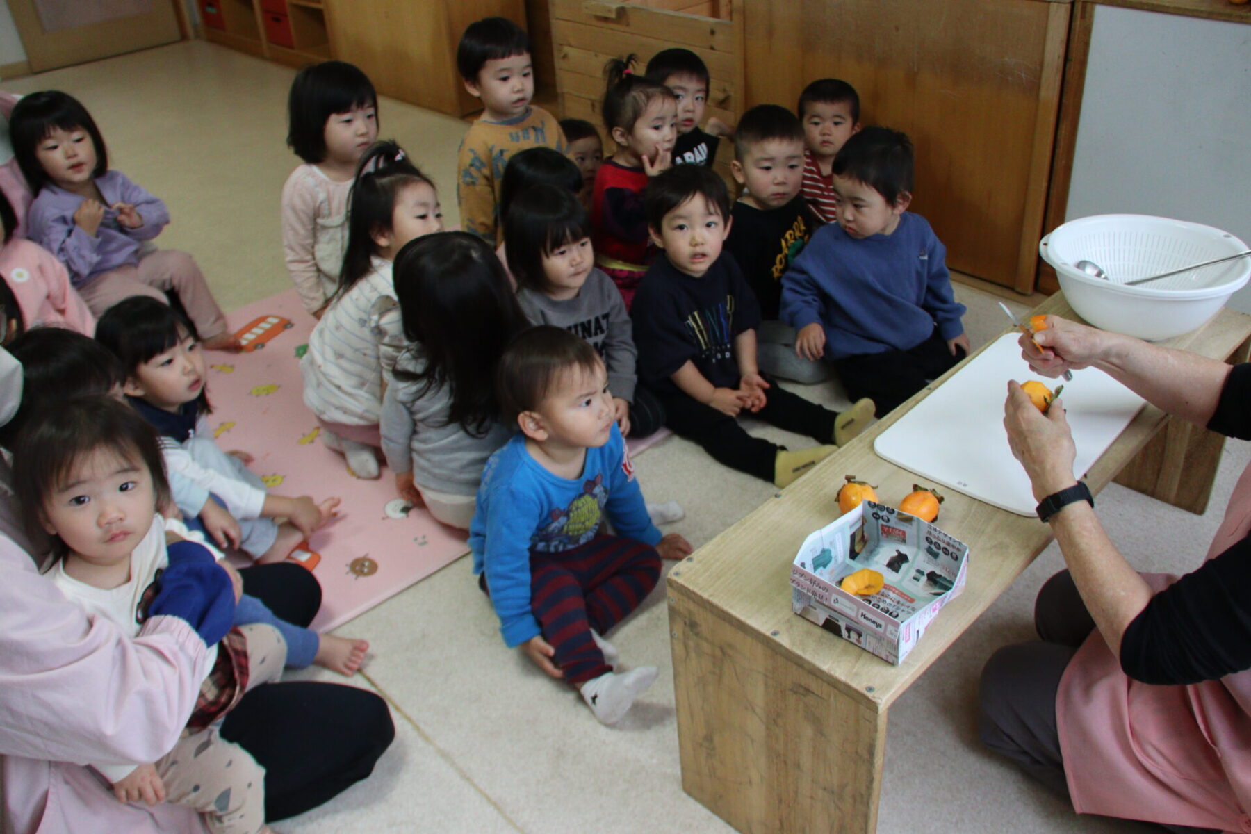 いつも保育園の子どもたちを見守ってくれている柿の木が 実をつけました。 収穫し、食べてみると