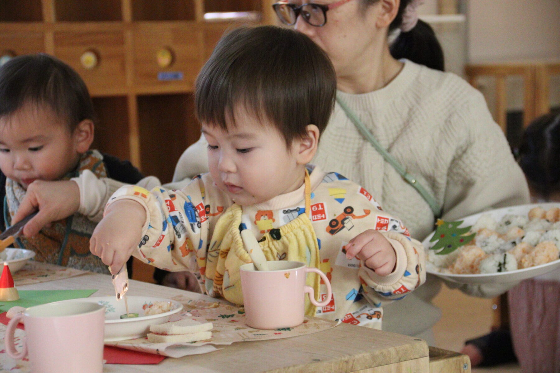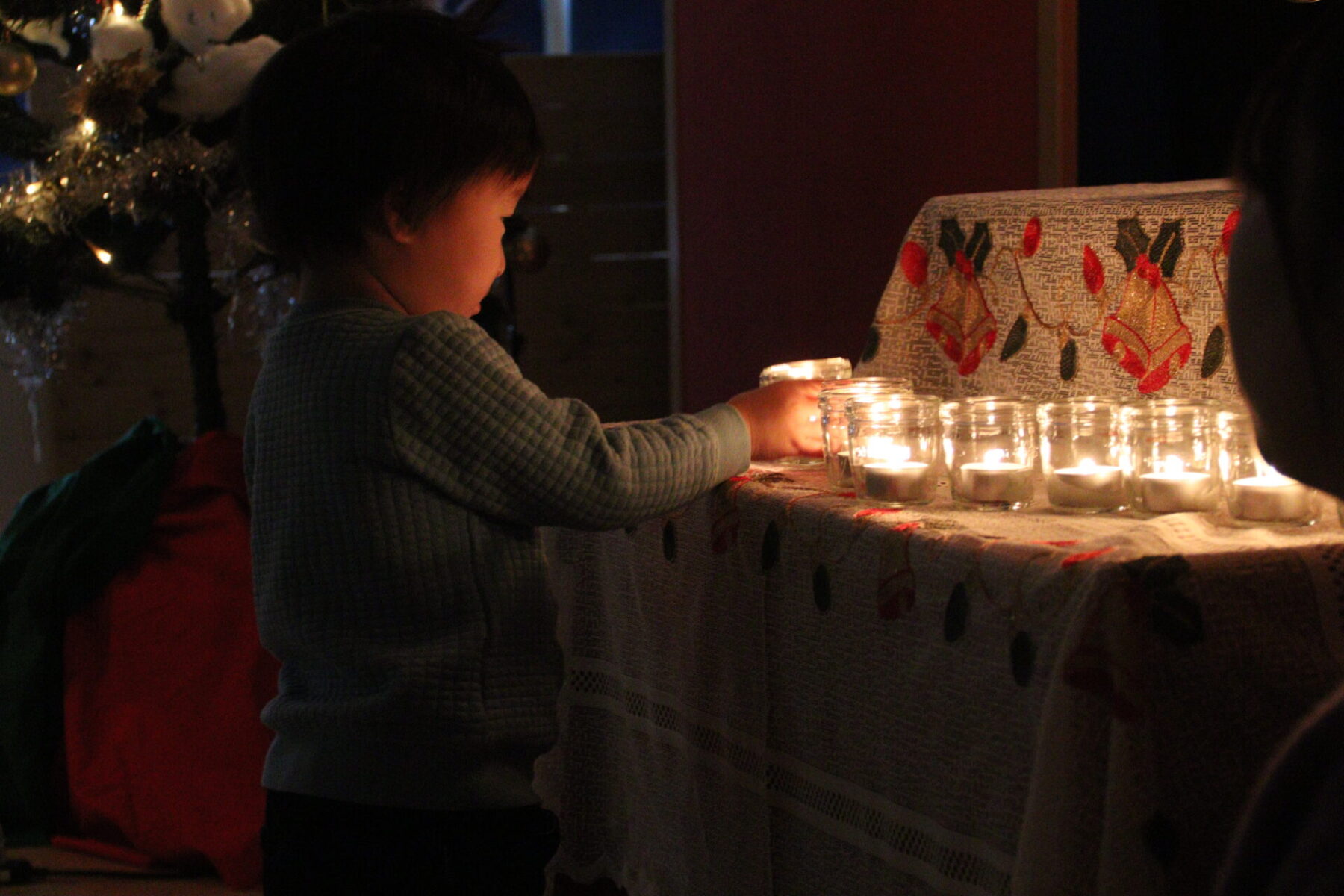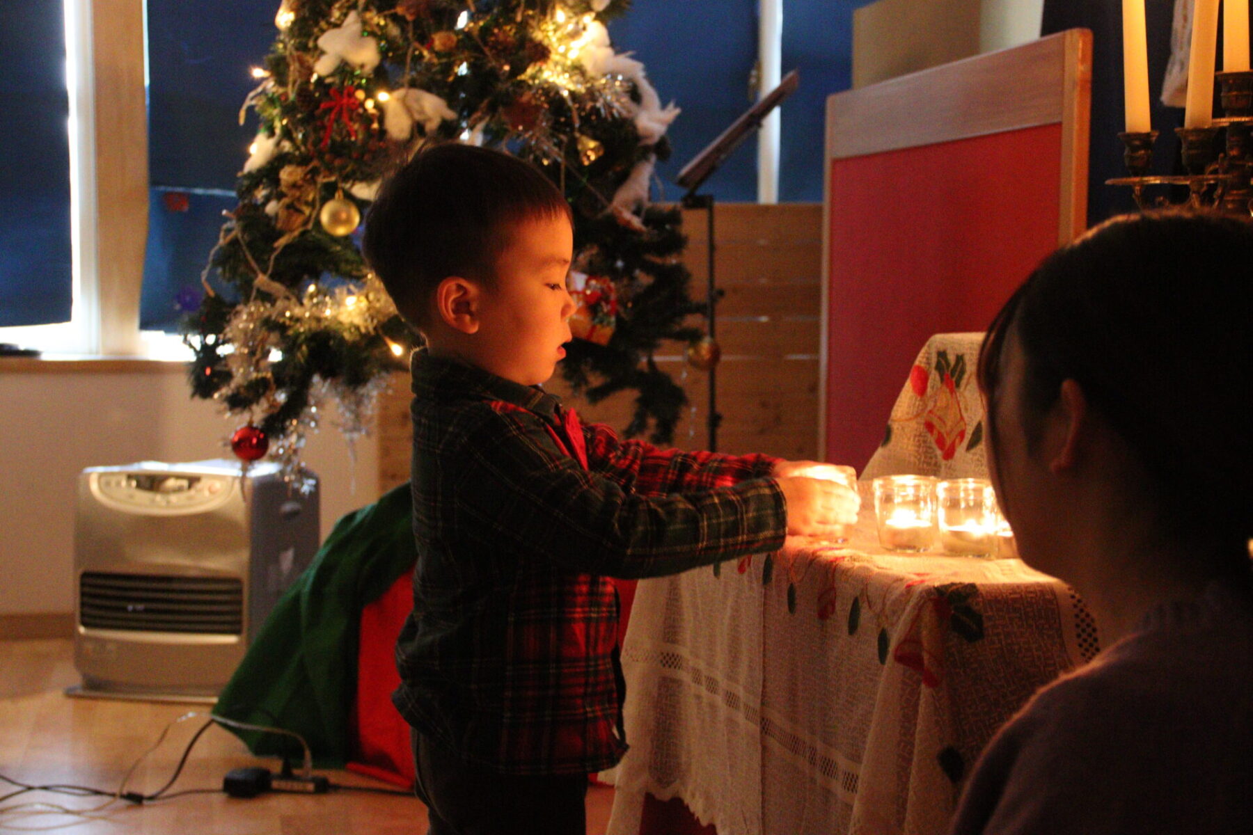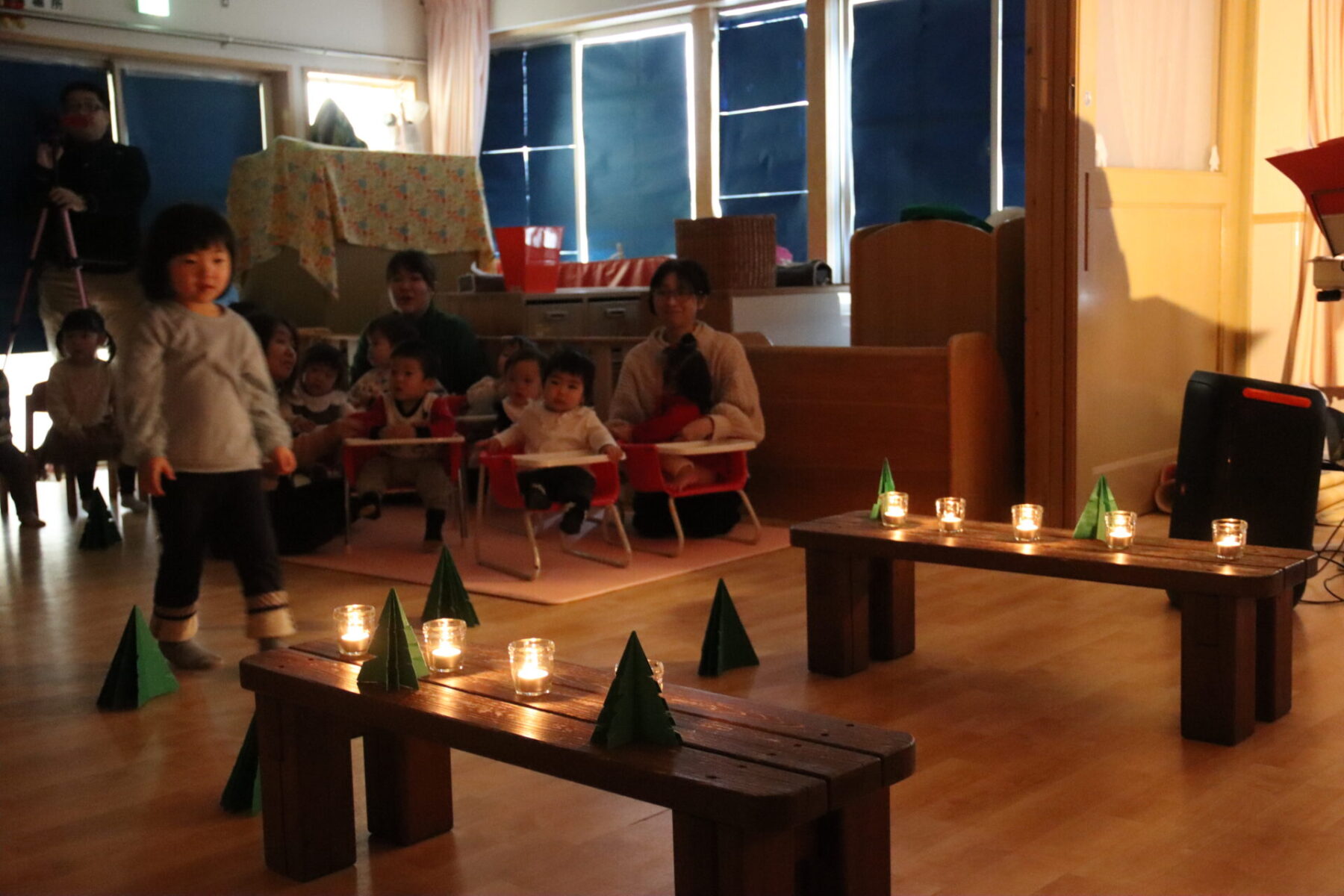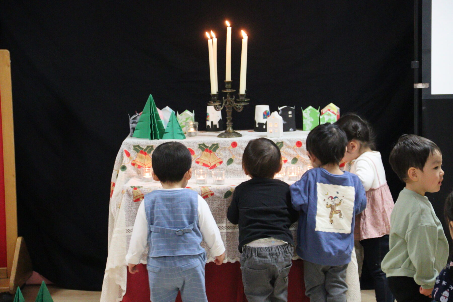 綺麗なキャンドルを目の前にした、2歳児さんからはドキドキした気持ちが伝わってくるようです。