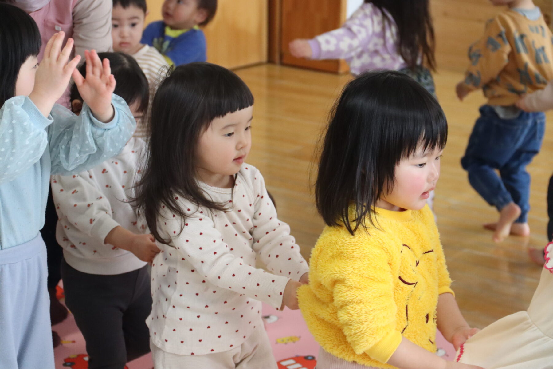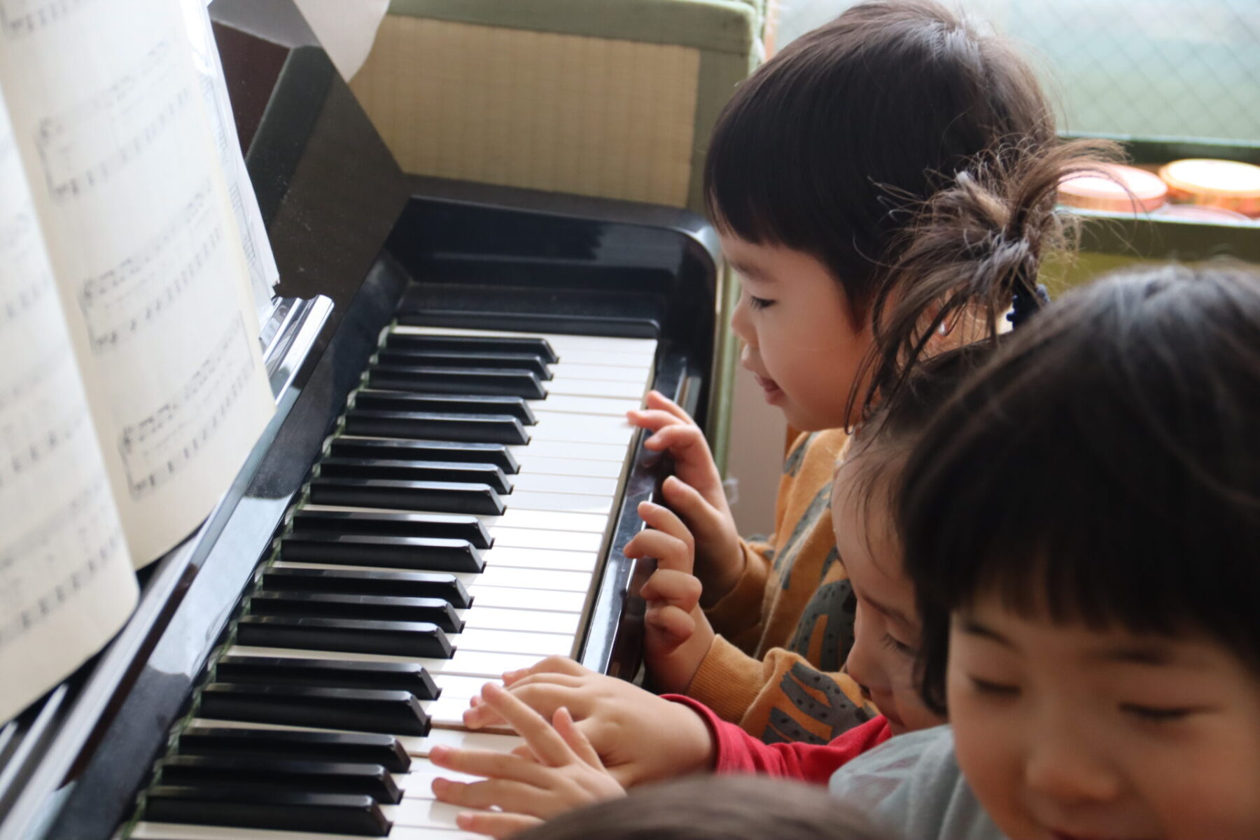 ピアノの音色に合わせて身体でリズムをとったり、揺らしたり・・・