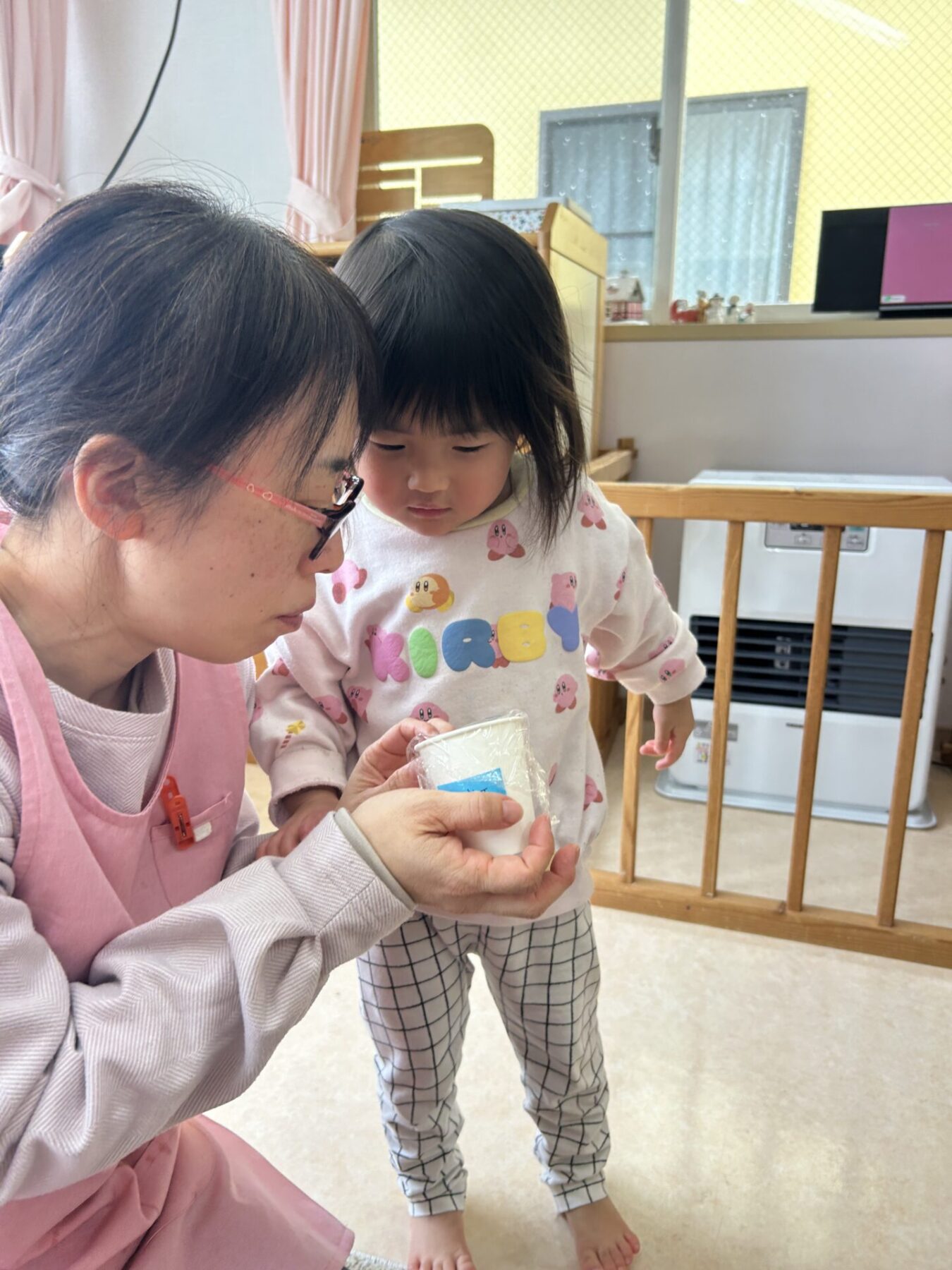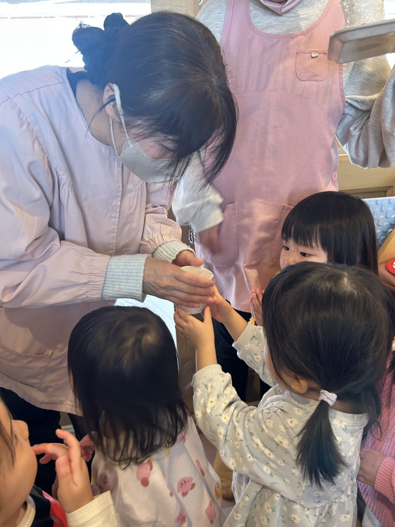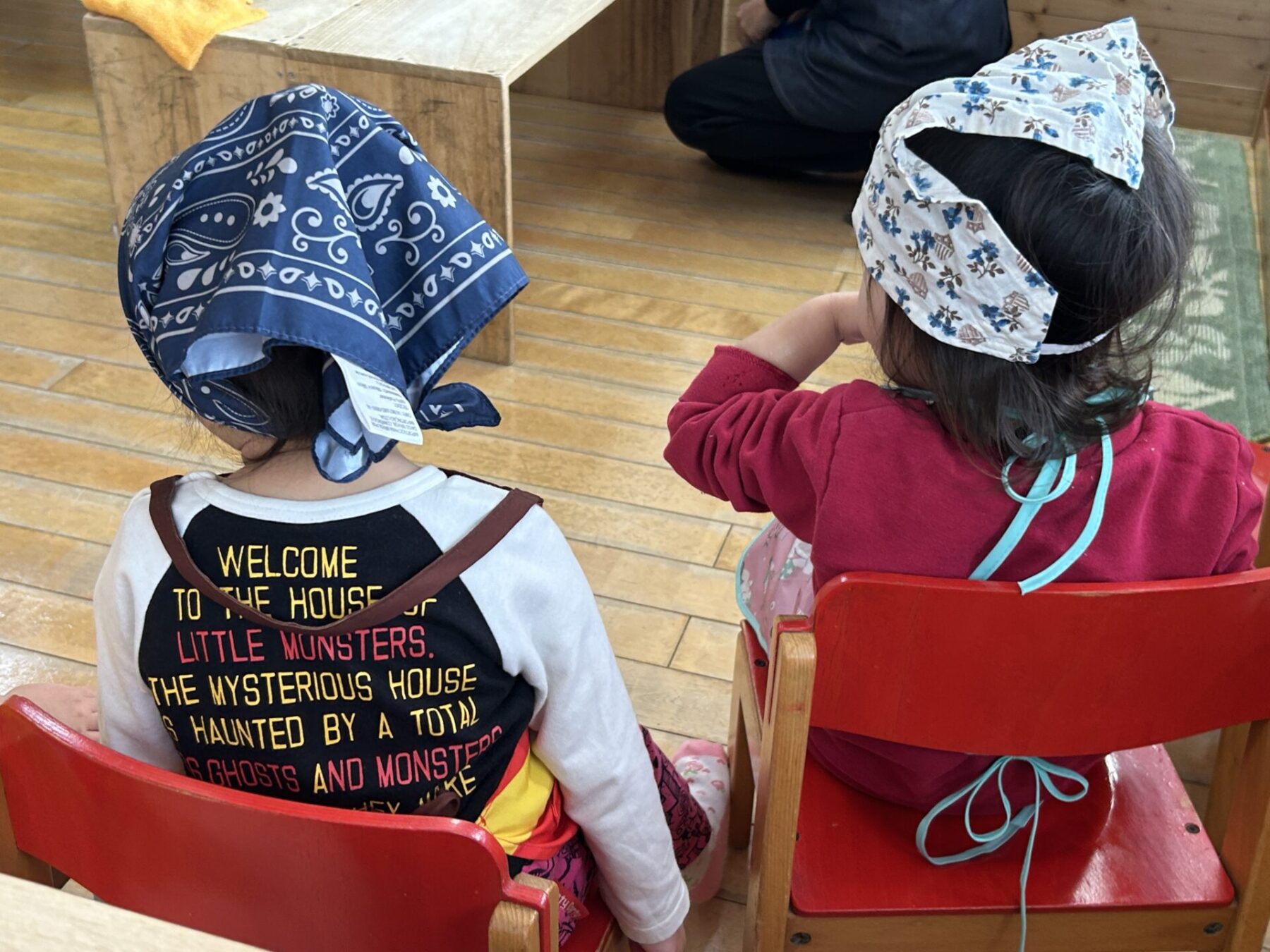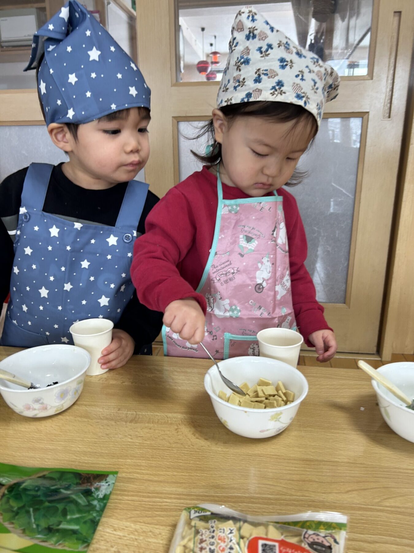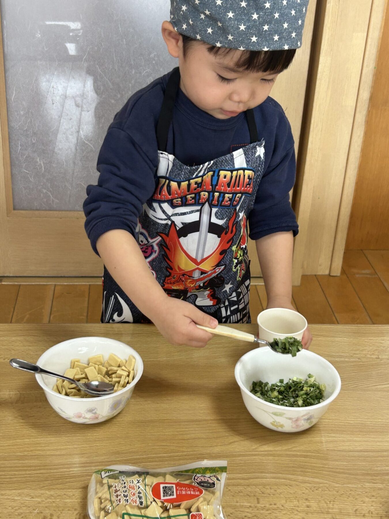 登園すると「エプロン持ってきたよ♪」と嬉しそうに話し、朝の準備を始めます。