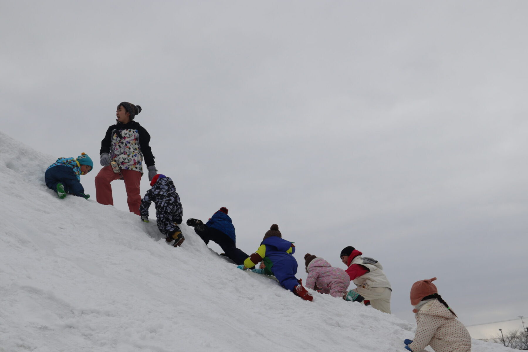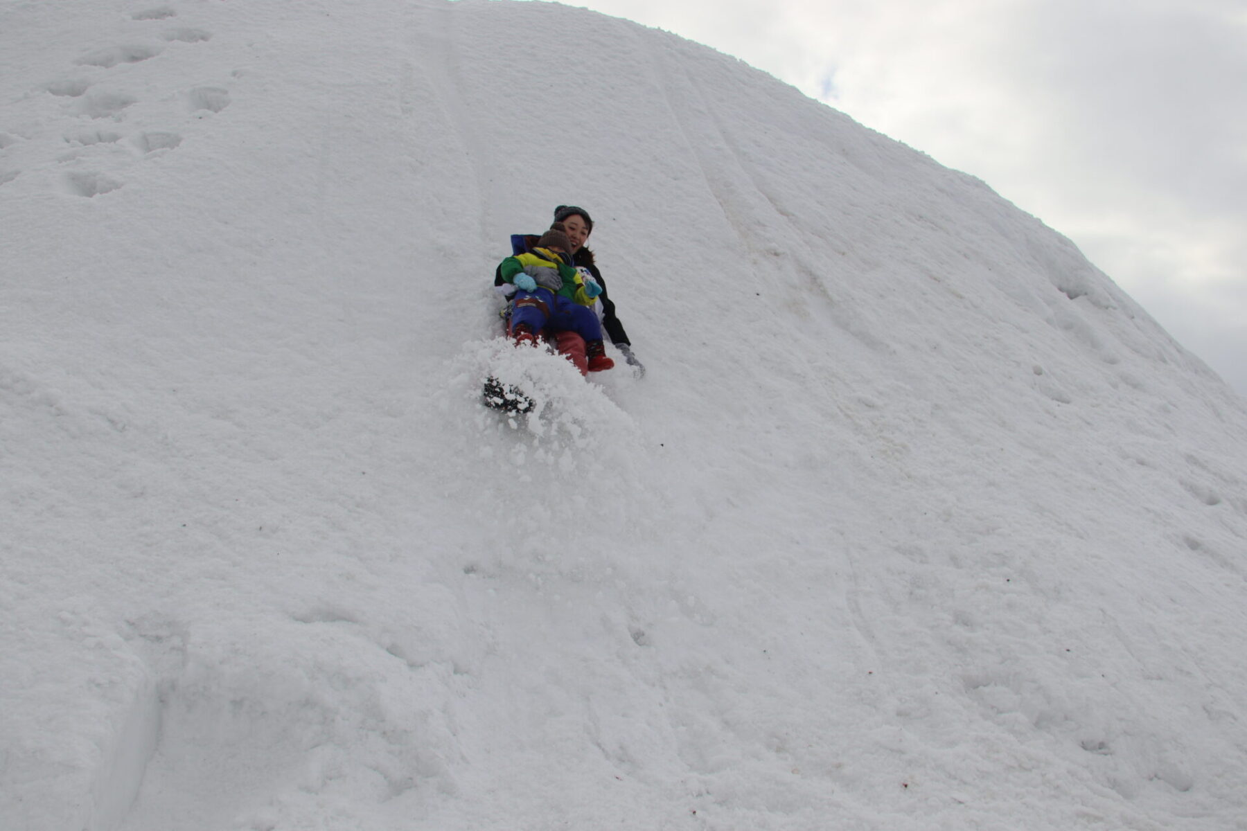 大きな雪山を登ります。