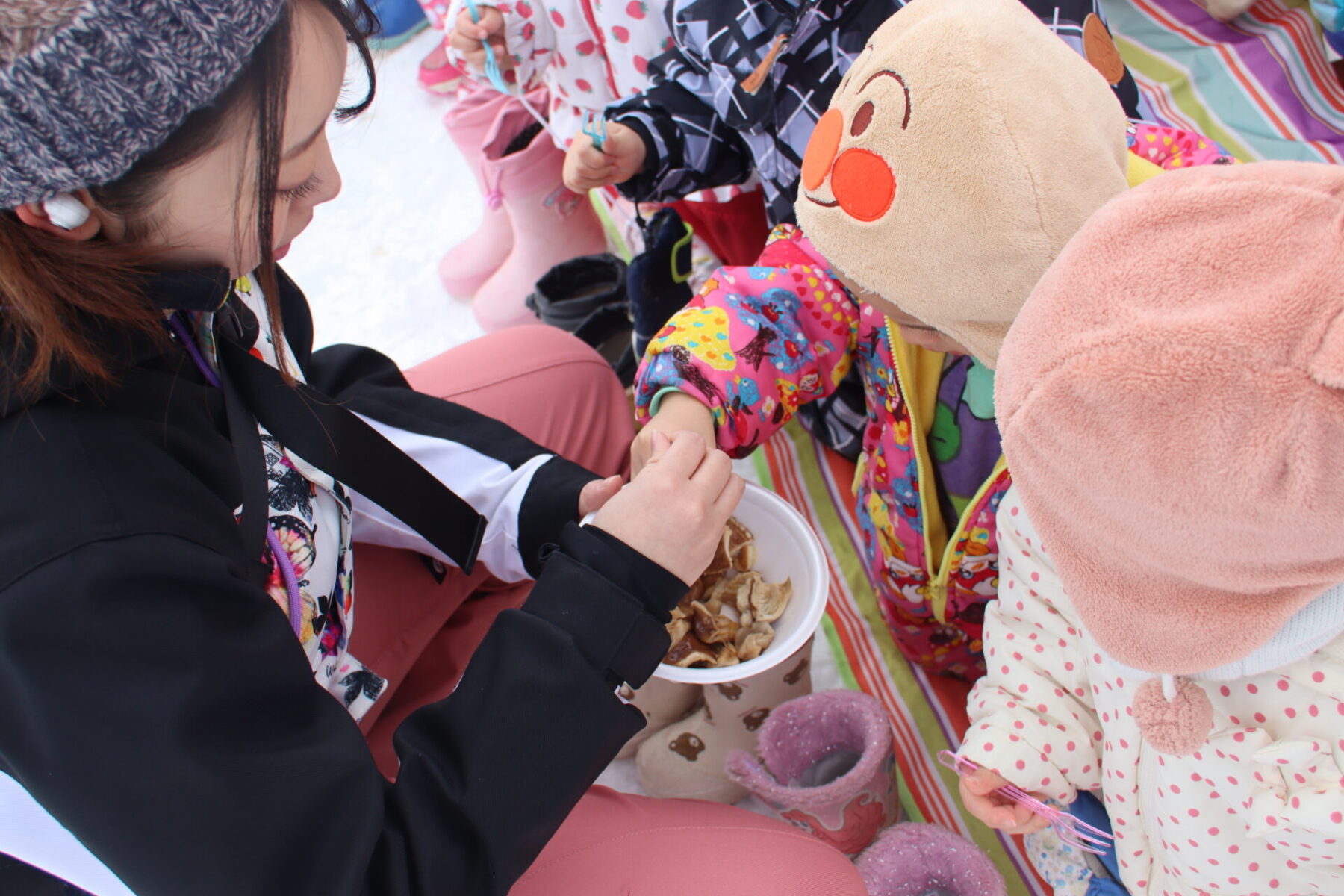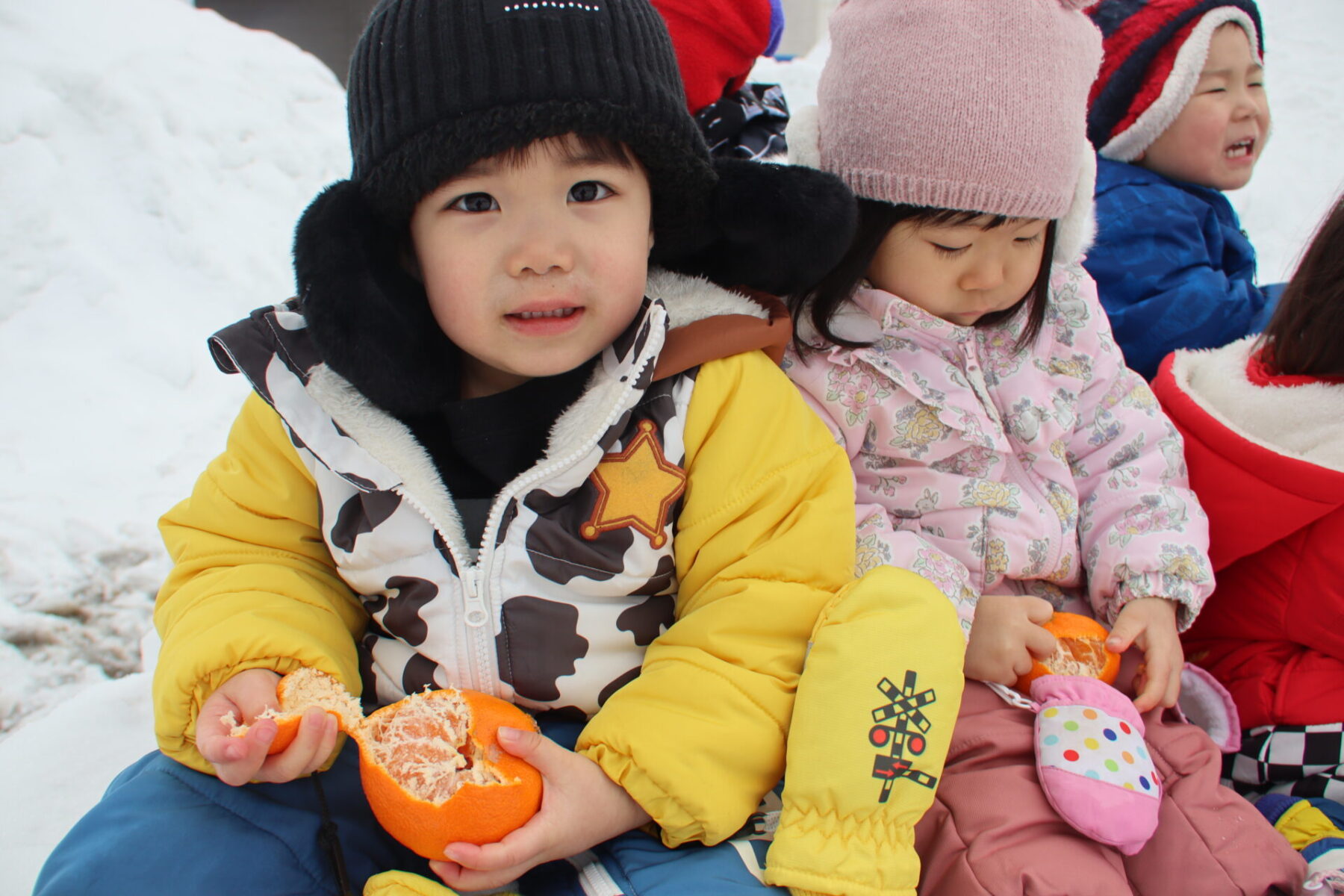 子どもたちは、雪遊びはもちろん、火起こしで野菜を焼くことにも期待を持って今日を迎えました。