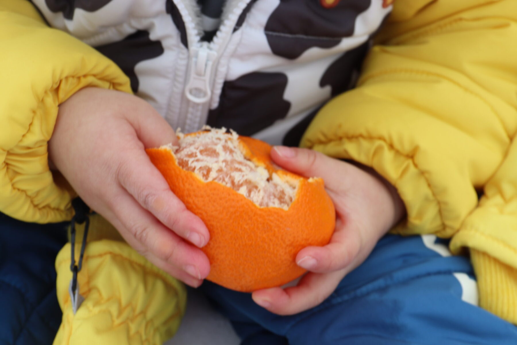 指先を細やかに使い、白い筋を取って食べているお友だちもいましたよ。